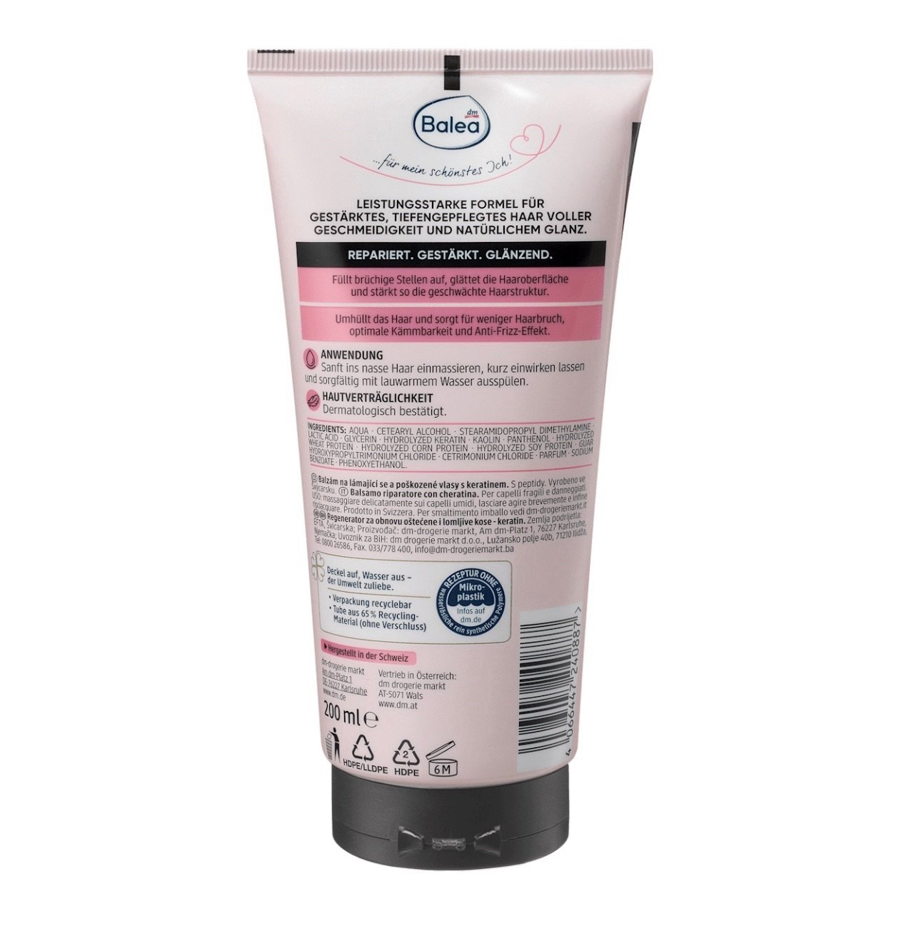 Renforcez et lissez vos cheveux fragiles et indisciplinés avec l’Après-Shampooing à la Kératine de Balea (gamme Professional « Keratin Repair » ou « Glatt »), disponible chez Bel DM. La kératine est le composant principal du cheveu. Cet après-shampooing contient des phyto-kératines (kératine végétale) et des peptides qui pénètrent la fibre pour combler les brèches et réparer les zones endommagées. Il aide à lisser la structure du cheveu, à réduire les frisottis et à faciliter le coiffage. C’est le soin idéal pour les cheveux abîmés par la chaleur (lissages, brushings) ou pour entretenir un lissage brésilien. Les cheveux sont plus forts, plus résistants et visiblement plus lisses et brillants. Obtenez une chevelure soyeuse avec ce produit DM authentique importé par Bel DM au Maroc.