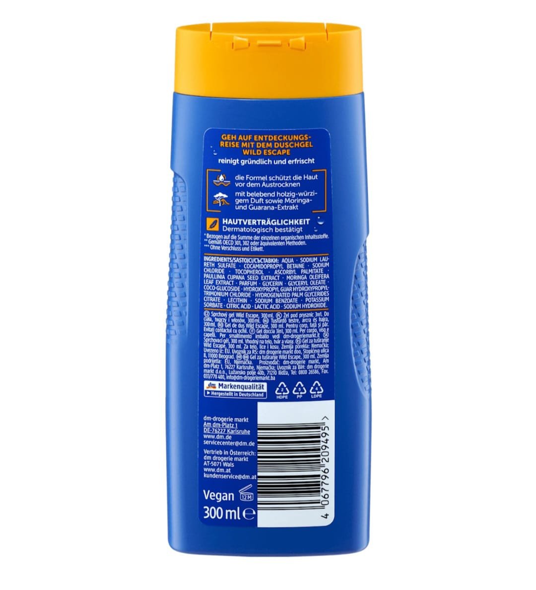 (Description 2) Optimisez votre temps et votre espace avec le Gel Douche 3-en-1 de Balea (ou Balea Men), le produit multifonction par excellence, importé par Bel DM au Maroc. Ce produit tout-en-un est le compagnon idéal pour le sport, les voyages ou les matins pressés. Une seule bouteille vous permet de laver votre corps, votre visage et vos cheveux. Sa formule équilibrée, au pH neutre, est conçue pour respecter la sensibilité de chaque zone : elle nettoie la peau sans la dessécher et lave les cheveux en les laissant propres et faciles à coiffer. Découvrez les parfums frais, sportifs ou marins de cette gamme authentique Balea, garantie par Bel DM.