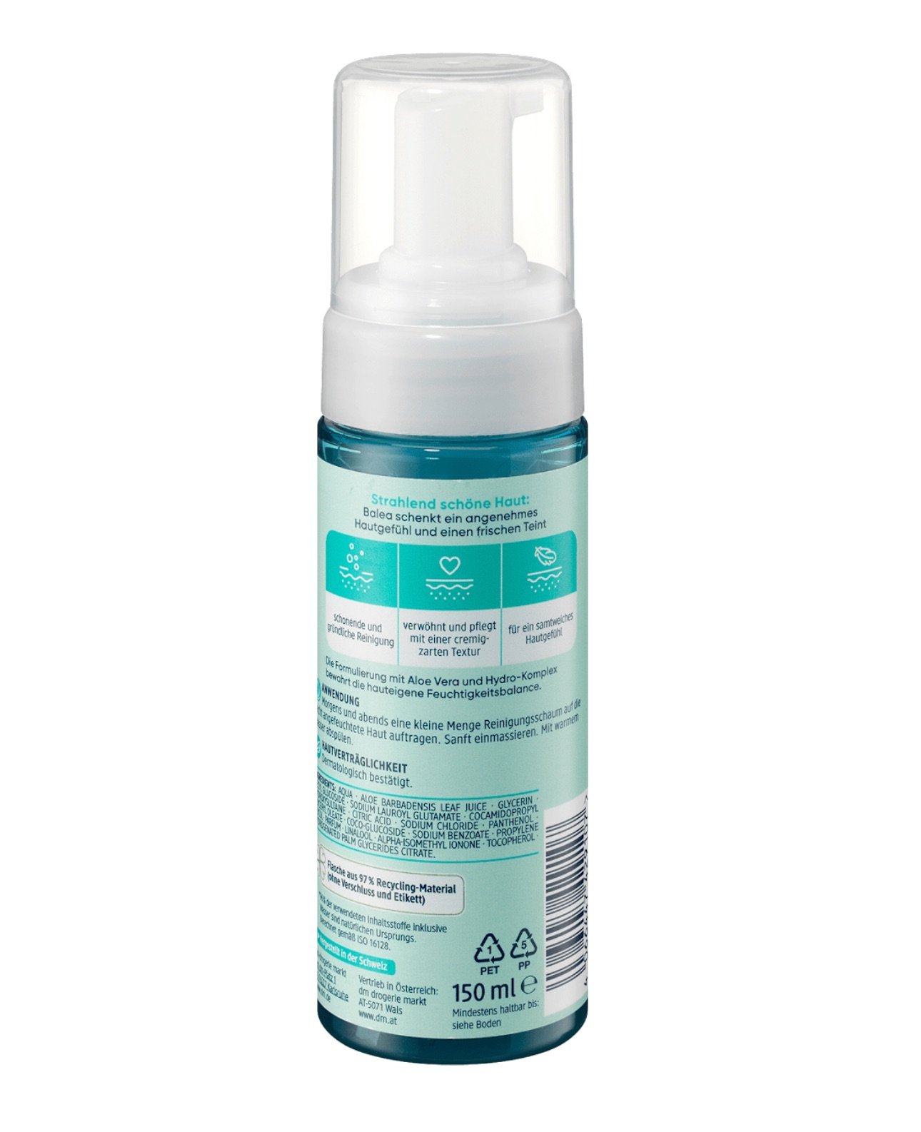 (Description 2) Retrouvez une peau parfaitement nette et fraîche avec la Mousse Nettoyante pour peaux normales à mixtes de Balea, disponible chez Bel DM. Cette mousse légère comme un nuage est un plaisir à utiliser. Sa formule, enrichie en extrait de fleur de lotus et en provitamine B5, nettoie la peau en profondeur mais tout en douceur. Elle élimine l’excès de sébum sur la zone T, les impuretés et les résidus de maquillage, sans dessécher les joues. La peau est purifiée, matifiée et hydratée. Elle retrouve son équilibre naturel et un teint éclatant. C’est le nettoyant quotidien idéal, importé d’Allemagne par Bel DM, pour une peau saine au Maroc.