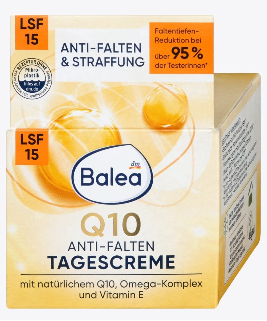 Lissez vos rides et raffermissez votre peau jour après jour avec la Crème de Jour Anti-Rides Q10 de Balea, un best-seller anti-âge disponible chez Bel DM Maroc. Cette crème de jour est un véritable cocktail d’actifs pour les peaux matures. Elle contient du Coenzyme Q10, un antioxydant puissant qui protège la peau et stimule le renouvellement cellulaire. Elle est également enrichie en complexe Oméga, riche en acides gras essentiels, pour nourrir intensément la peau et renforcer sa barrière. Elle aide à réduire visiblement la profondeur des rides et à améliorer l’élasticité de la peau. Dotée d’un SPF 15, elle protège également des rayons UV, prévenant le vieillissement cutané prématuré. Bel DM vous garantit ce produit Balea authentique pour une peau visiblement plus jeune.