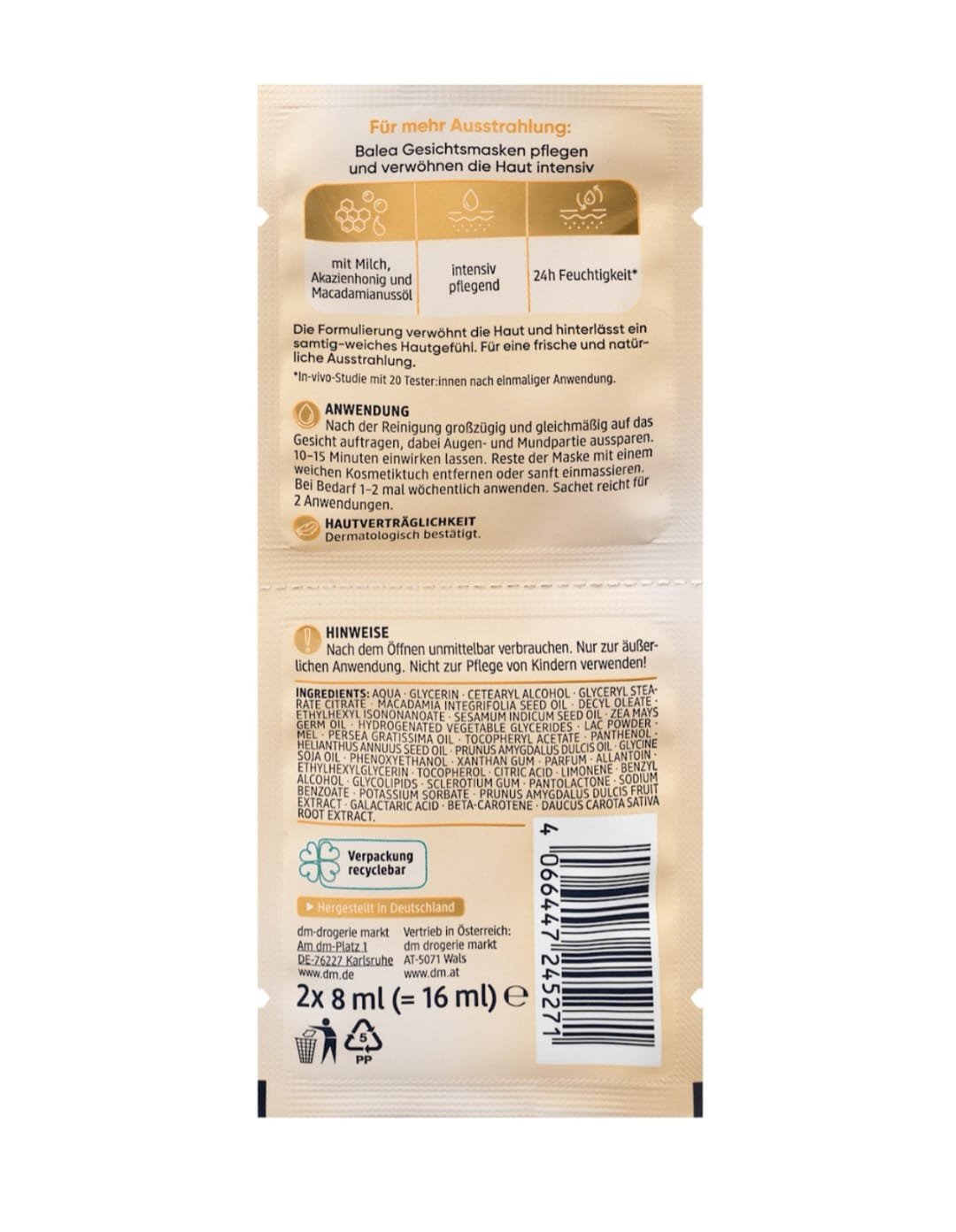 Offrez un soin réconfortant et nourrissant à votre peau avec le Masque Hydratant Miel et Lait de Balea, disponible chez Bel DM au Maroc. Ce masque crème est un classique du « cocooning », idéal pour les peaux sèches et fatiguées. Le lait est reconnu pour ses propriétés adoucissantes, tandis que le miel d’acacia est un puissant hydratant et réparateur naturel. Ensemble, ils nourrissent la peau en profondeur, apaisent les tiraillements et redonnent de la souplesse. La texture onctueuse et le parfum gourmand de ce masque en font un véritable moment de détente. La peau est visiblement plus douce, repulpée et confortable. Retrouvez ce produit Balea authentique chez Bel DM pour chouchouter votre peau.