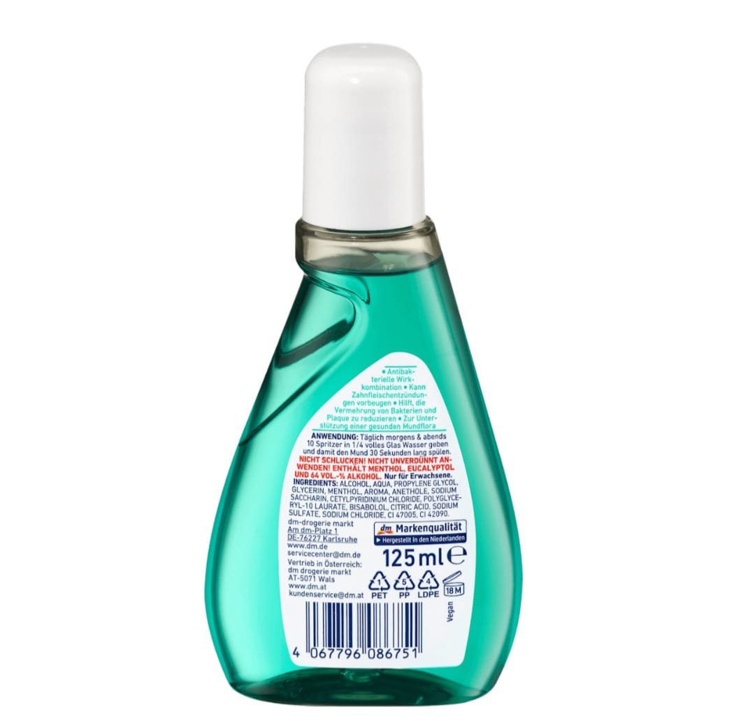 Assurez une hygiène bucco-dentaire complète avec le Bain de Bouche Anti-Bactérien de DONTODENT (marque DM), importé par Bel DM au Maroc. Le brossage seul ne suffit pas. Ce bain de bouche (souvent « Total Power » ou « Fresh ») agit là où la brosse ne passe pas, notamment entre les dents et sur la langue. Sa formule puissante, sans alcool (selon la variante), combat activement les bactéries responsables de la plaque dentaire, de la gingivite et de la mauvaise haleine. Il aide à prévenir les caries grâce au fluor et laisse une sensation de propreté et de fraîcheur intense et durable dans toute la bouche. C’est le geste final indispensable pour une protection complète. Bel DM vous garantit ce produit DONTODENT authentique pour un sourire sain.