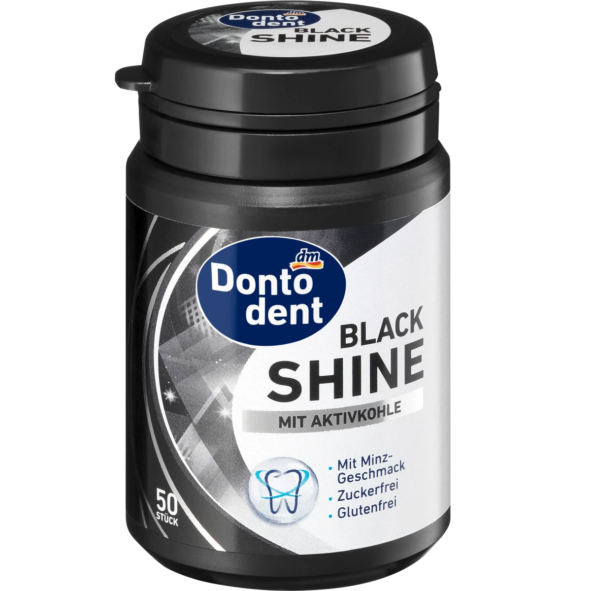 * Chewing-gum Black Shine (50 pcs) : Au charbon actif, xylitol et huile de menthe poivrée. Sans gluten, vegan. Qualité suisse pour une fraîcheur intense.