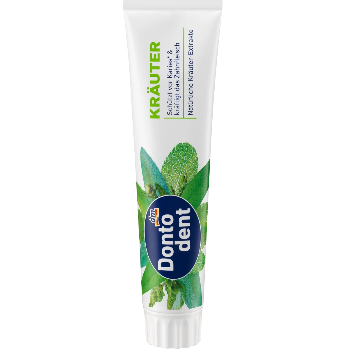 Un trio complet de la marque Dontodent pour une hygiène buccale parfaite, axée sur la protection naturelle et la fraîcheur des herbes.