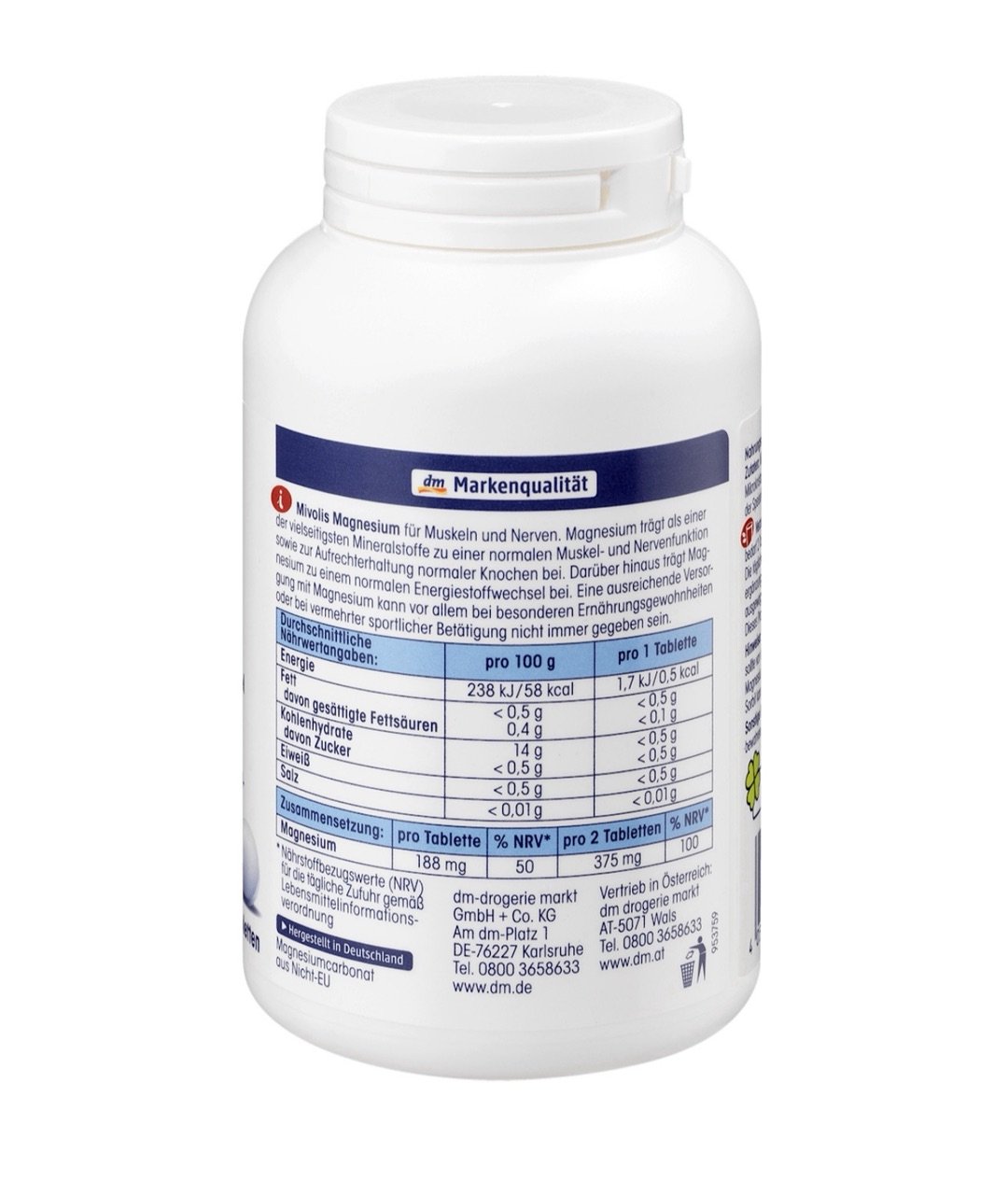 (Note : Complément alimentaire) Luttez contre la fatigue, le stress et les crampes musculaires avec le Magnésium 300 mg de Mivolis (marque DM), votre allié bien-être disponible chez Bel DM au Maroc. Le magnésium est un minéral essentiel qui contribue au fonctionnement normal du système nerveux, à une fonction musculaire normale et à la réduction de la fatigue. Un rythme de vie intense, le stress ou une activité sportive peuvent augmenter vos besoins. Ces comprimés, faciles à avaler, vous apportent la dose quotidienne recommandée pour maintenir votre équilibre. C’est le complément idéal en période d’examens ou de surmenage. Bel DM vous garantit la qualité allemande des compléments Mivolis authentiques, importés pour soutenir votre vitalité au Maroc.