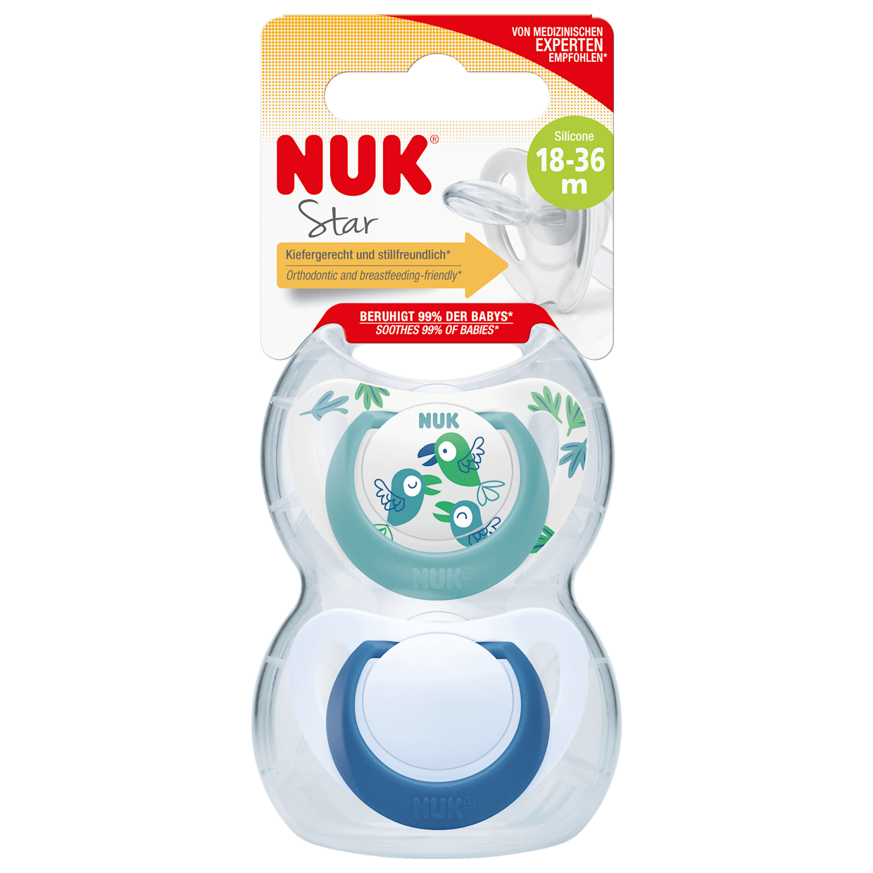 Sucette en silicone NUK Star, turquoise/bleu, taille 3, 18-36…, 2 pièces